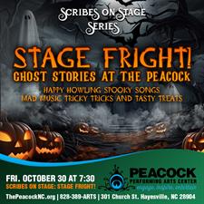 Stage Fright - Ghost Stories at the Peacock – 7:30 p.m. Friday, October 30th. Part Casper the Ghost. Part Addams Family. Join a ghostly gathering of creepy tales, chilling stories and family-friendly fun with tricks and treats for the kids, a costume parade for all with prizes, haunting music, and a weird poem or two. Digging up spooky, spirited moments on stage. Pumpkins, scarecrows and tombstones provide a backdrop for stories, sketches, dancing, music, costumes and songs. Batty bats, creepy creatures, and screams of joy - something for everyone.